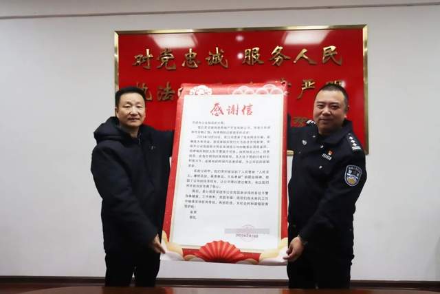 2月11日上午,园区某企业负责人一行为常德高新公安分局送来了两面印有“雄风扬警威 神速破窃案”和“尽职尽责 热情为民 雷霆出击 追回钱款 ”的锦旗和一封感谢信,对高新公安在护航企业发展、优化营商环境、打击违法犯罪等方面所做工作表示真挚感谢。