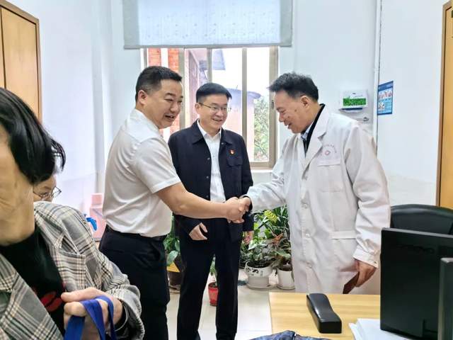 慰问组一行先后来到北区门诊诊室、南区急诊科,看望慰问了工作在临床一线的劳动模范。在交流中,医院党委书记陈祥表示,时代需要劳模,劳模也要引领时代,希望大家在各自岗位上继续发光发热,带动和激励全院干部职工爱岗敬业、踏实工作,在苦干实干之中实现人生价值,在创新创业中争做新时代的奋斗者。