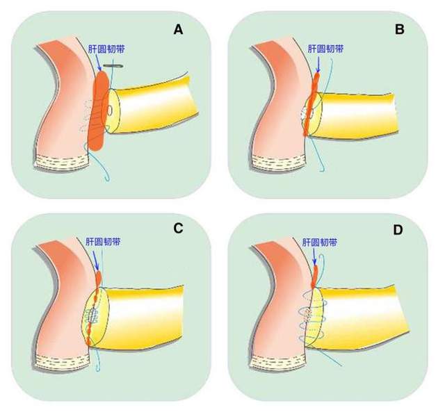 改良兵氏吻合(在胰肠吻合后方垫入肝圆韧带)