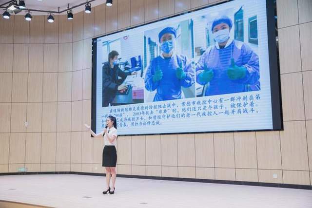 演讲者闫佳芸以“特殊的纪念章”为主题,从她的爷爷-原常德市卫生防疫站离退休干部宋彩星同志的一枚“卫生防疫工作三十年纪念章”开启,展现了老一辈常德防疫人为了防治传染病,克服各种困难穿街走巷主动寻找病人去做防治工作。然后从消灭天花、迎战非典、消除疟疾、抗击新冠等,体现了常德疾控人“常怀仁德、防病除疫”的信念与奉献。最后演讲者感受到这枚纪念章的精神传承,成为了新时代的疾控人,也展现了常德疾控人奋斗拼搏、担当作为、无私奉献的精神风貌。
