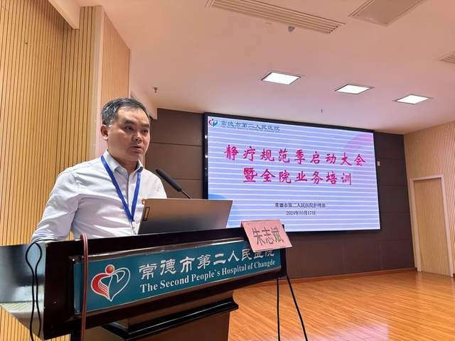 副院长朱志斌致辞,希望大家学以致用,查漏补缺,持续提高护理质量,保障患者安全。
