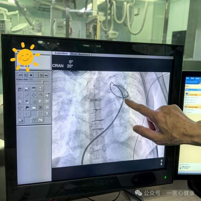 随后,根据患者肺动脉的解剖学形态,医生们操控着肺动脉射频消融导管,对关键的“消融靶点”实施了精准的点对点消融。消融结束后,医生们密切观察患者的心率,再次进行右心导管检测,确认无血管穿孔、血栓形成等任何异常情况后,才撤出导管及鞘管。
