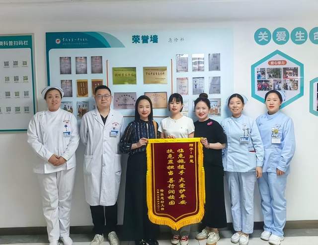 近日,在常德市武陵区特乐思幼儿园门口,一家长突然晕倒在地,紧急时刻,恰巧在幼儿园接孩子放学的常德市第一中医医院急诊科护士孙慧和肝胆胰脾外科护士张翼闻讯赶来,立刻对其展开抢救,及时挽救了生命。几天后, 幼儿园的老师们带着绣有“临危施援手,大爱护平安;扶危显担当,善行润校园”的锦旗来到了常德市第一中医医院,对两位医护人员暖心相助的义举表示了感谢。“两位家长用实际行动给孩子和所有人上了一堂‘爱心与责任’的课,我们深感自豪!”