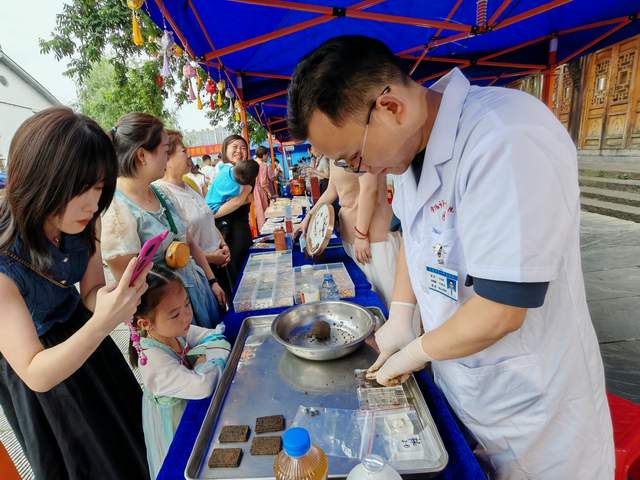 此次活动正值端午节前夕,医院创新性地将中医药传统文化与节日习俗相结合。医护人员精心选用艾叶、菖蒲、丁香等具有驱蚊功效的中药材,通过模具制成造型精美的中药香牌和手串串珠。据医护人员介绍,这些饰品经过干燥打磨后还会涂上保护油,既保留了药效又提升了美观度,让市民在感受传统文化的同时还能起到保健作用。