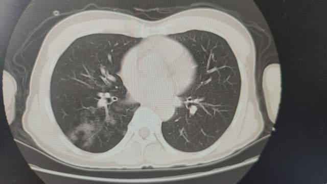 术后连续三天患者未再咯血,经支气管镜检查,发现患者右肺下叶背段开口有暗红色血凝块堵塞气道。经加压灌洗及冷冻取栓,成功疏通气道,清除了右肺血凝块。次日,患者康复顺利出院。