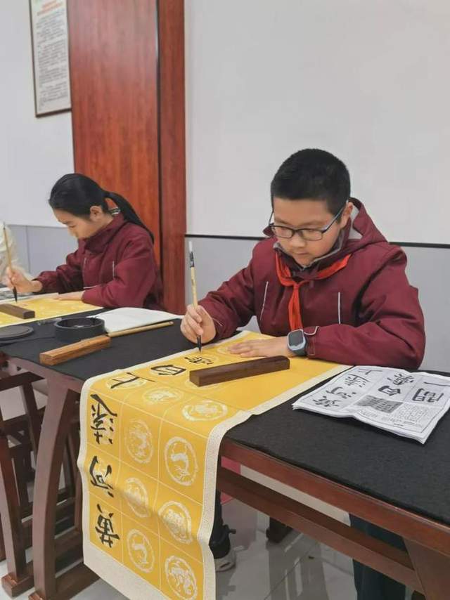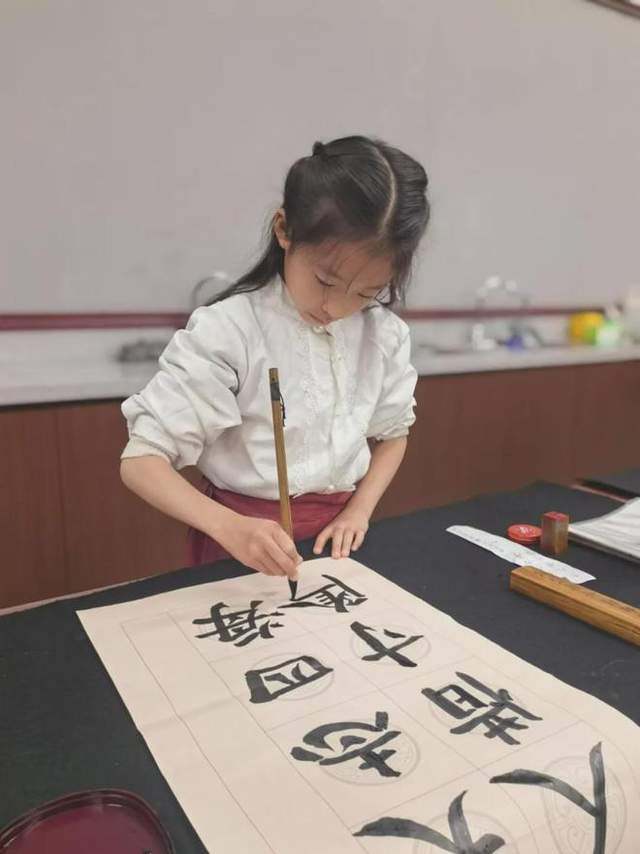 或端庄,或飞扬,风格各异的笔墨,在纸间绽放出别样的风采。有的同学稳如泰山,以楷书见长——横平竖直间,笔力雄浑,字字铿锵,尽显汉字的庄重与力量;有的同学则潇洒随性,以行书入心——笔走龙蛇,行云流水,一撇一捺之间,灵动的韵味跃然纸上。每一幅作品,都是他们心灵与笔墨交织的成果,是对汉字艺术的一次真挚致敬。这一刻,传统文化不再遥远,它在孩子们的笔下焕发出属于新时代的鲜活生命力。