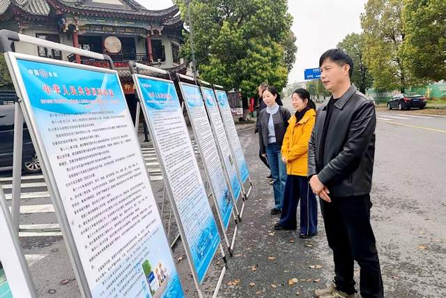 群众围观宣传展板