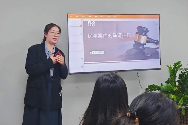 随后,本次活动的主讲人蒋丽君律师围绕《民事案件的举证技巧》这一主题,展开了深入而细致的讲解。她从证明责任、调查收集证据、证人证言运用规则以及公文书证运用规则等四个重要方面入手,逐一剖析了民事案件举证过程中的关键要点和实用技巧,为参会人员带来了一场内容丰富、干货满满的知识盛宴。
