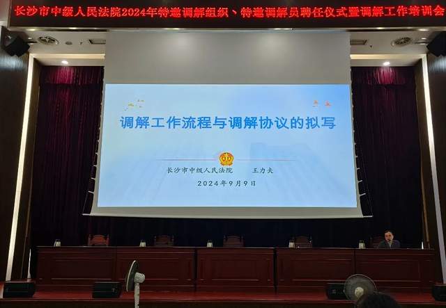 为加强和规范特邀调解员队伍管理,实现多元调解工作的规范化、系统化和常态化。9月9日,长沙市中级人民法院召开2024年特邀调解组织、特邀调解员聘任仪式暨调解工作培训会。湖南芙蓉律师事务所党总支副书记、合伙人、管委会委员、女律师工作委员会副会长王艳律师受邀参加。
