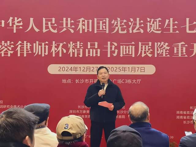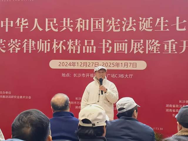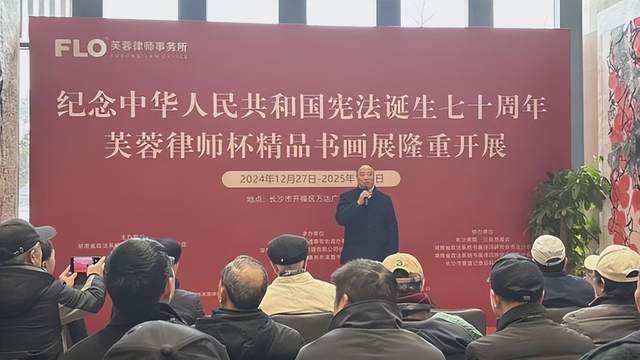 2024年12月27日,纪念中华人民共和国宪法诞生七十周年芙蓉律师杯精品书画展在长沙市开福区万达广场C3栋大厅盛大开幕,展览期限自2024年12月27日至2025年1月7日。