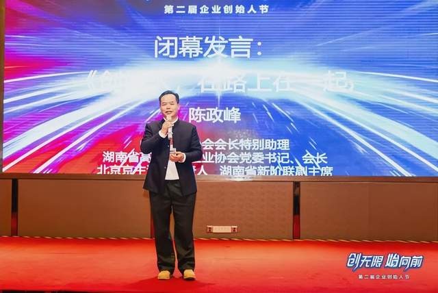闭幕发言中,湖南省新阶联副主席、湖南省高新技术企业协会党委书记陈政峰发表了题为《创始人,在路上在一起》的讲话,鼓励各位创始人继续前行,携手共进,为社会进步与经济发展贡献更多力量。