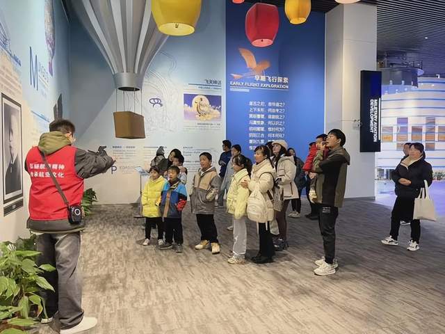 活动当日,党员们带领着家属孩子准时抵达民航活动场地。踏入航空馆,历史的厚重感扑面而来。讲解员引领众人穿梭于民航发展的时光长廊,从莱特兄弟首次翱翔天际的蹒跚起步,到如今全球航线交织如网的蓬勃盛景,详实史料与珍贵物件相互映照,诉说着一代代民航人勇克难关、逐梦苍穹的壮丽史诗。党员们沉浸其中,不时交流感悟,家属们也专注聆听,为航空先辈们的拼搏而动容,孩子们眼中更是闪烁着好奇与向往之光,懵懂间种下探索科学的种子。