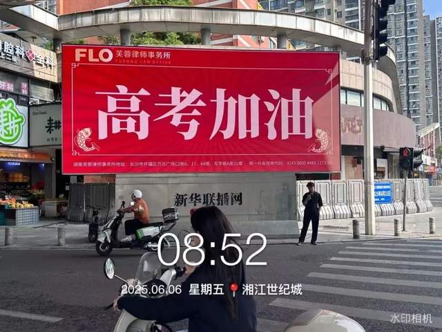 芙蓉律所充分发挥品牌优势,积极拓展公益宣传新阵地。律所凭借广泛的社会影响力与资源整合能力,在长沙市内各大路口精心刊出助力高考的宣传内容。不仅为考生和家长送去鼓励与关怀,更营造出全社会共同护航高考的浓厚氛围。